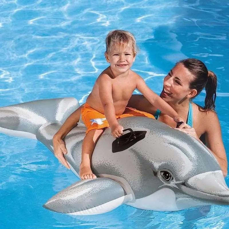 L’animal marin préféré des enfants s’invite dans votre piscine ! 🐬 Ce dauphin gonflable au réalisme saisissant est le compagnon idéal pour des heures de jeux et de glisse.